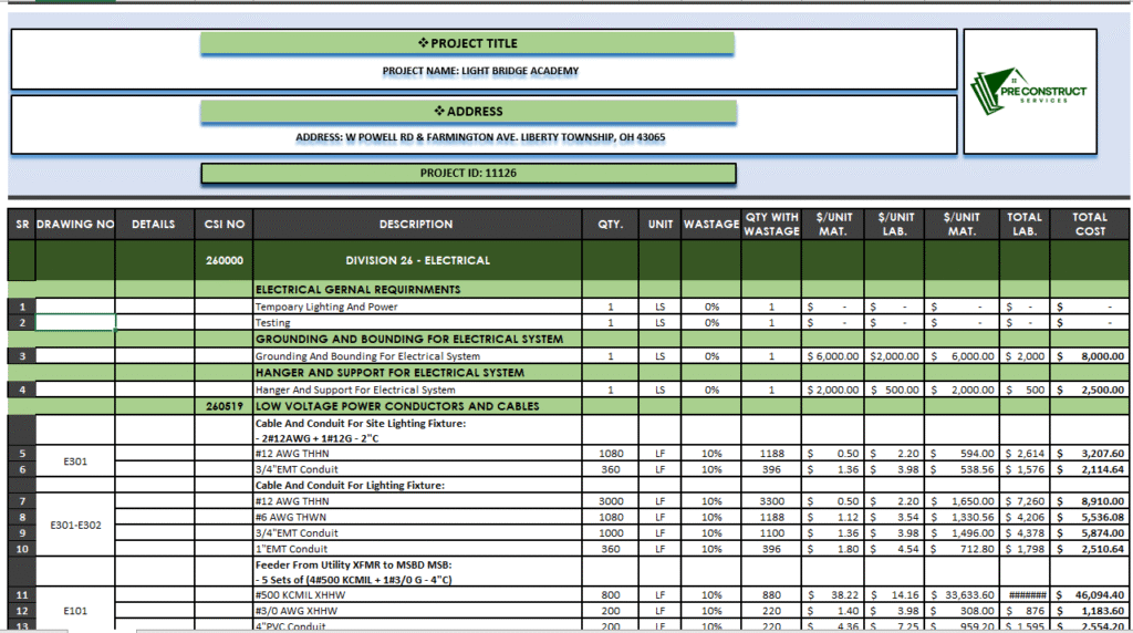 In today’s fast-paced construction industry, accuracy is the key to success. At Pre Construct Services, we provide Electrical Estimation Services in USA that go beyond numbers—we deliver clarity, confidence, and control for your projects. With our expert team and advanced estimation tools, you can eliminate guesswork and focus on winning more bids while staying within budget.